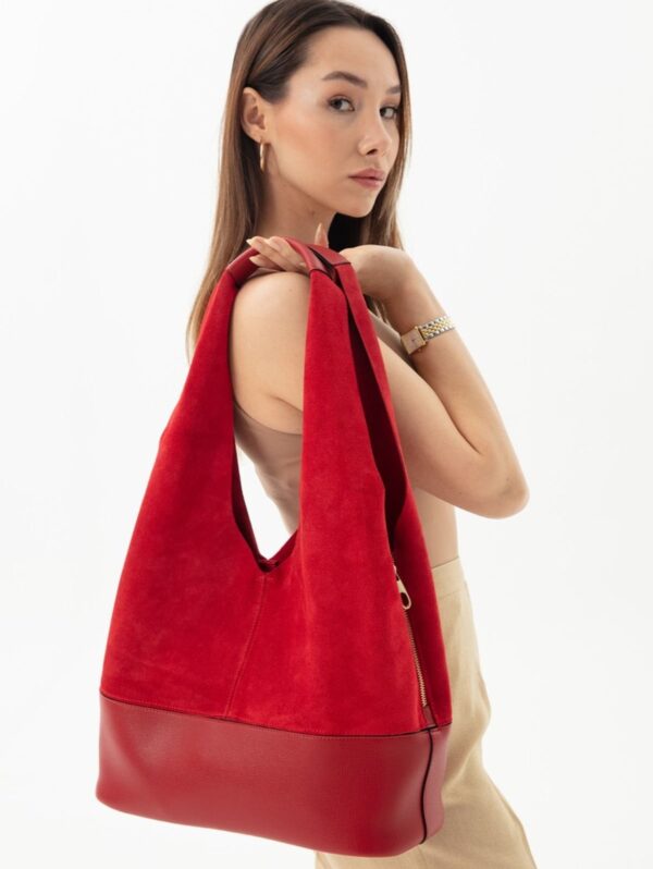 Hakiki Süet Salaş Omuz Çantası Bordo