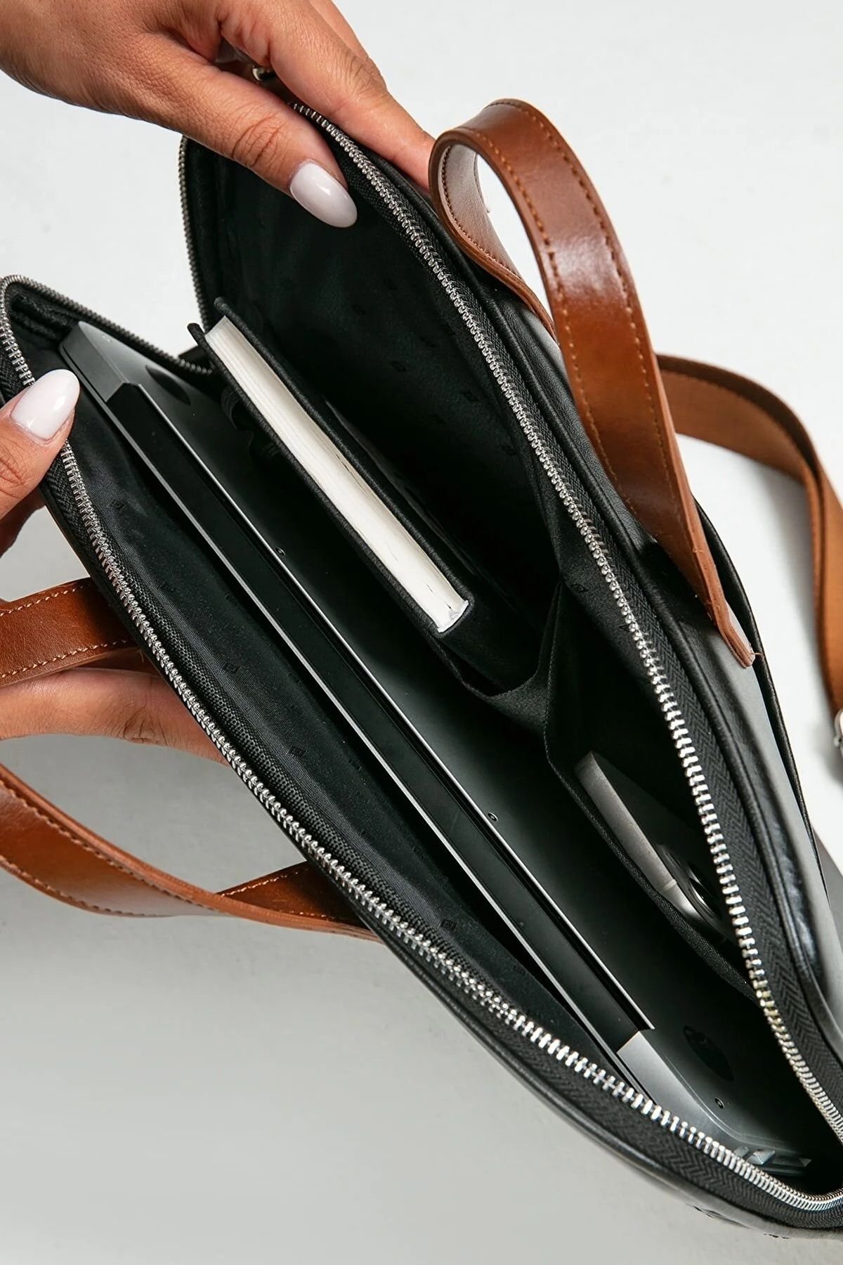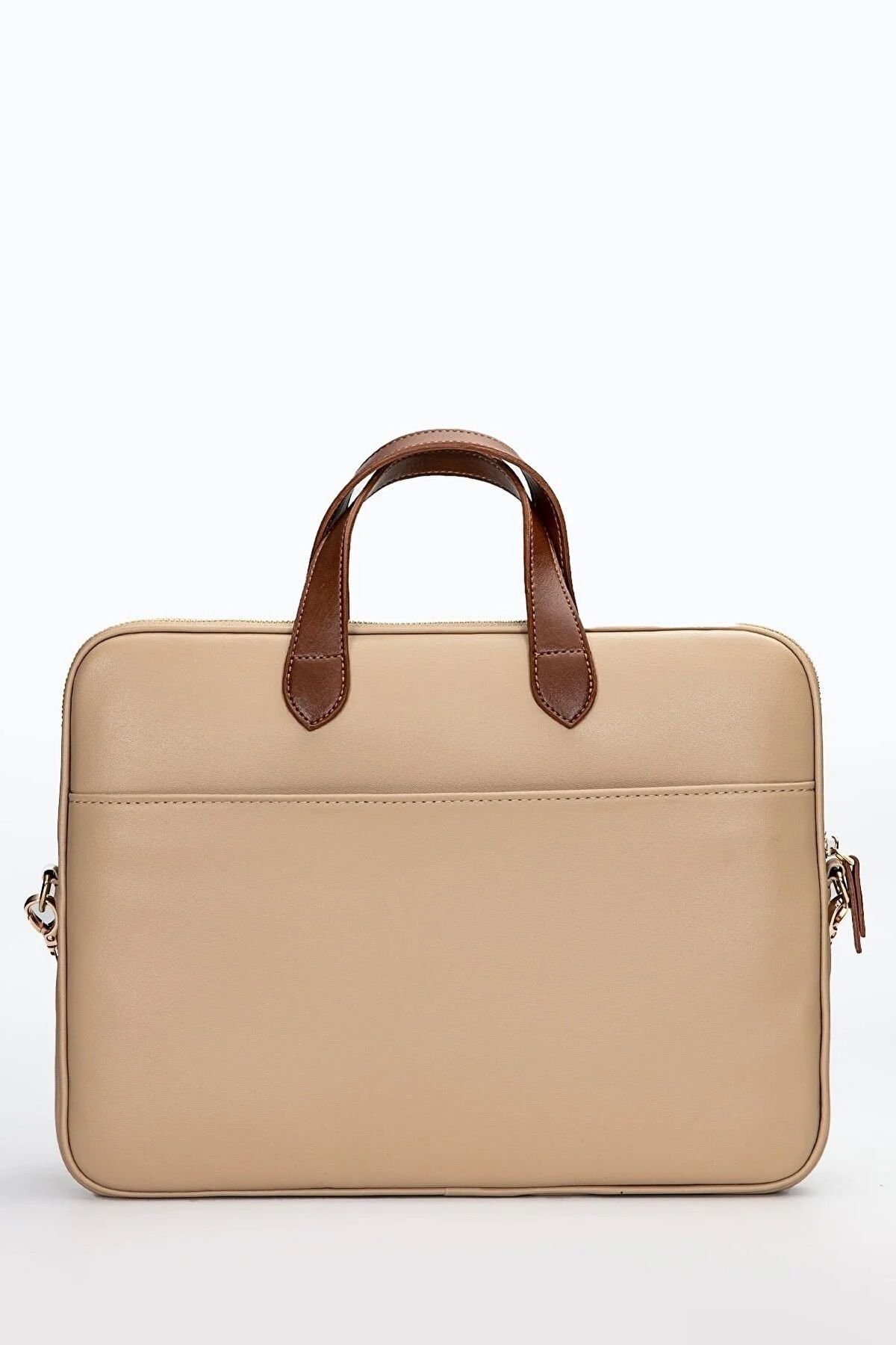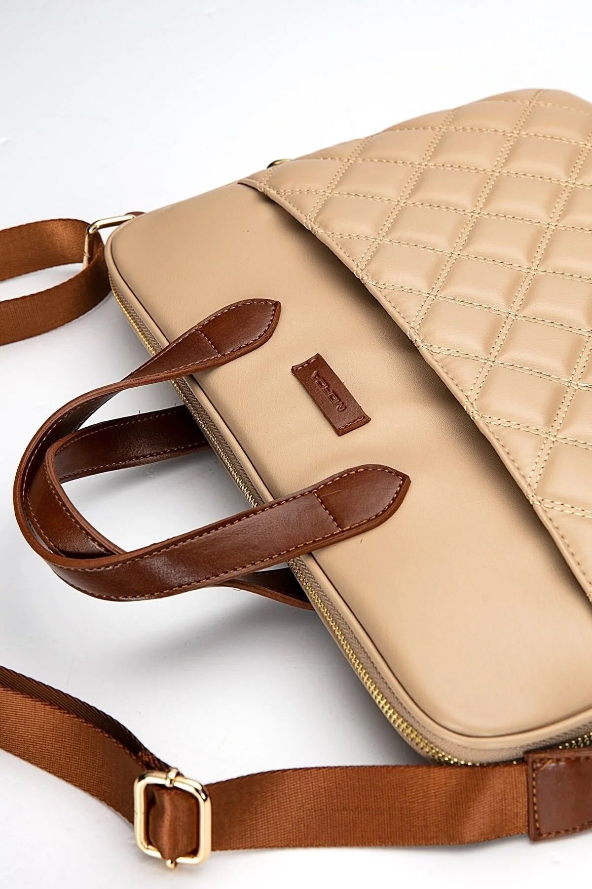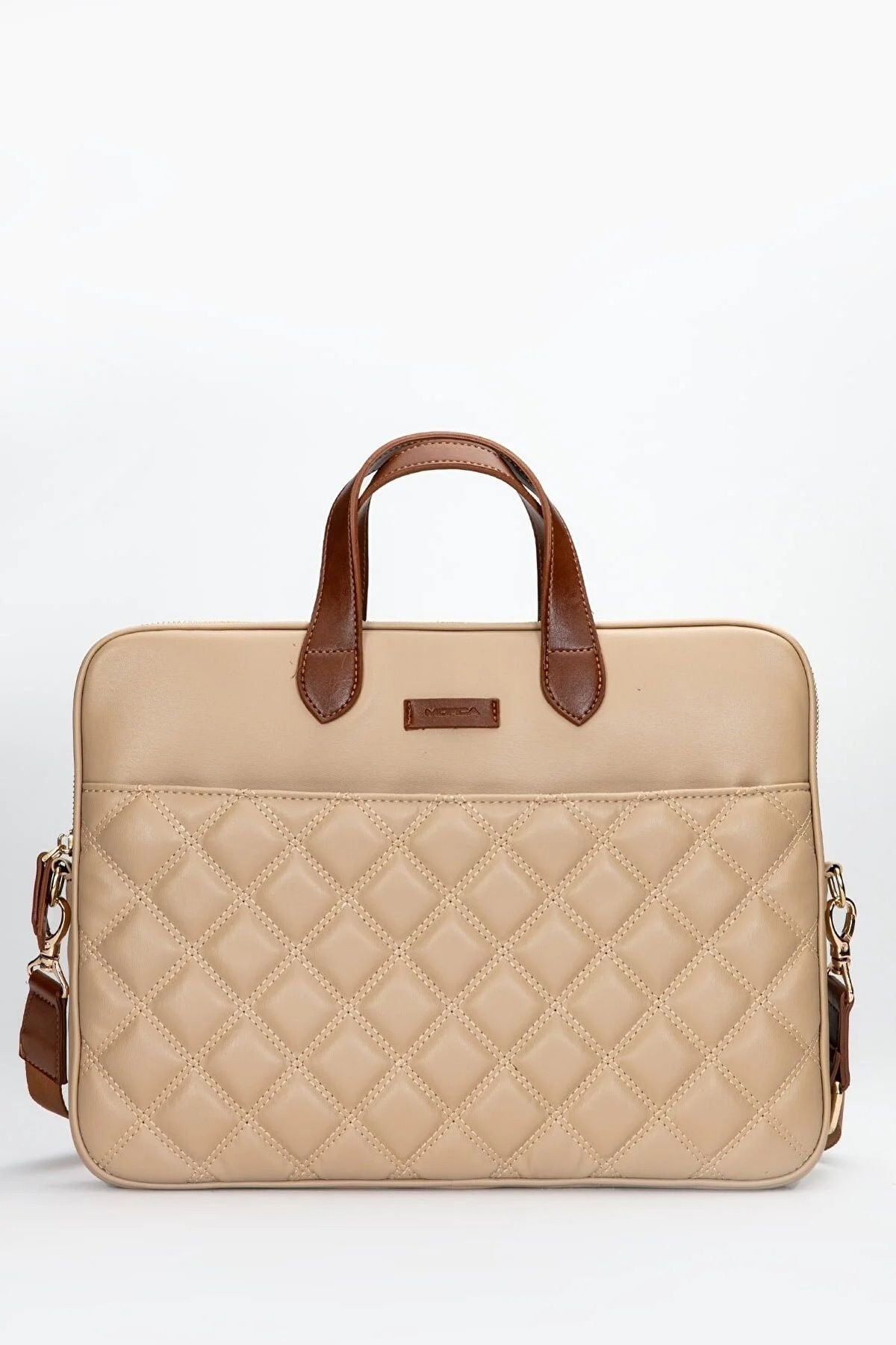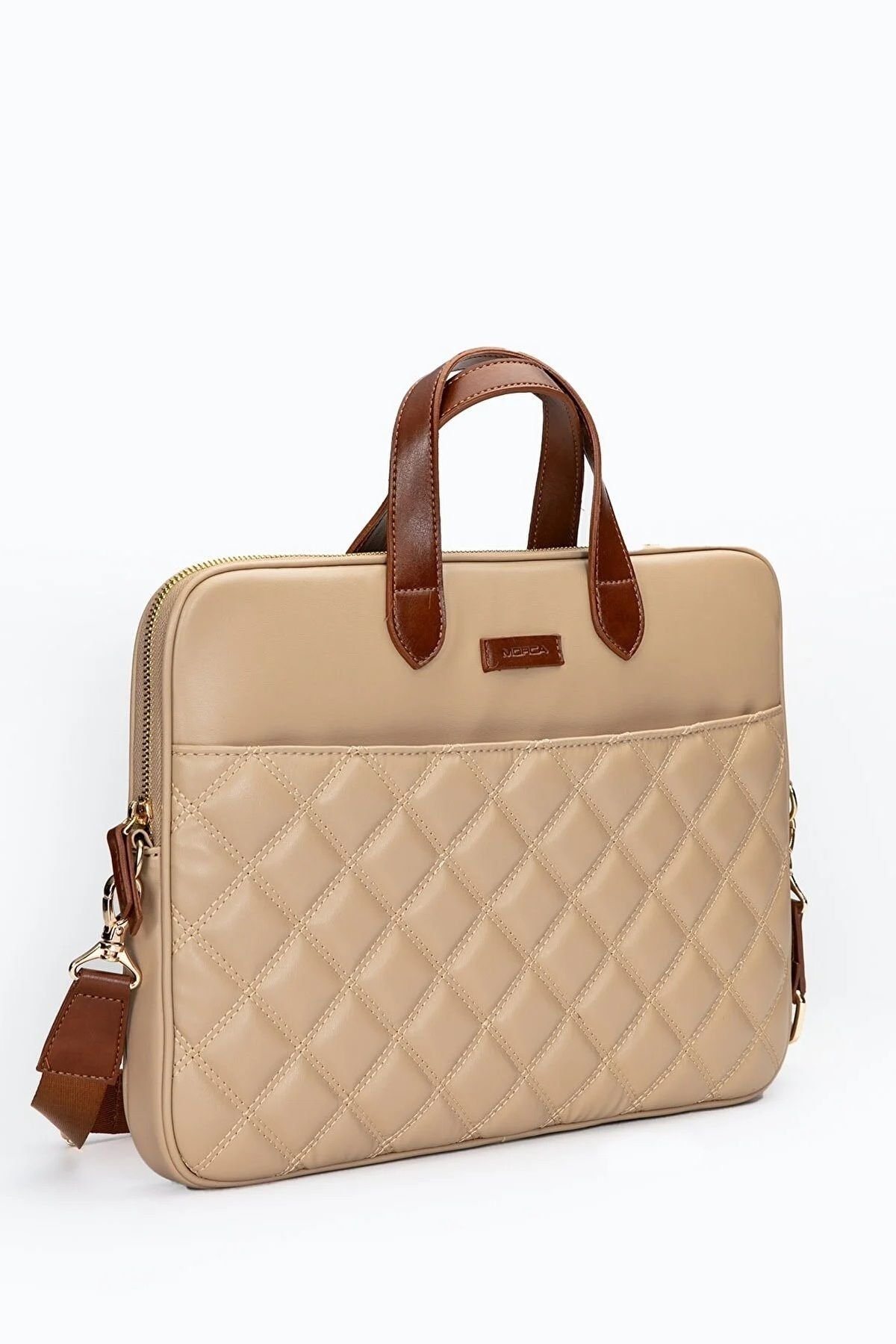 MORCA Macbook Askılı Notebook Çanta Tablet Laptop Kılıfı 13″-14″ ve 15″-16″ Kapitone Deri Vizon