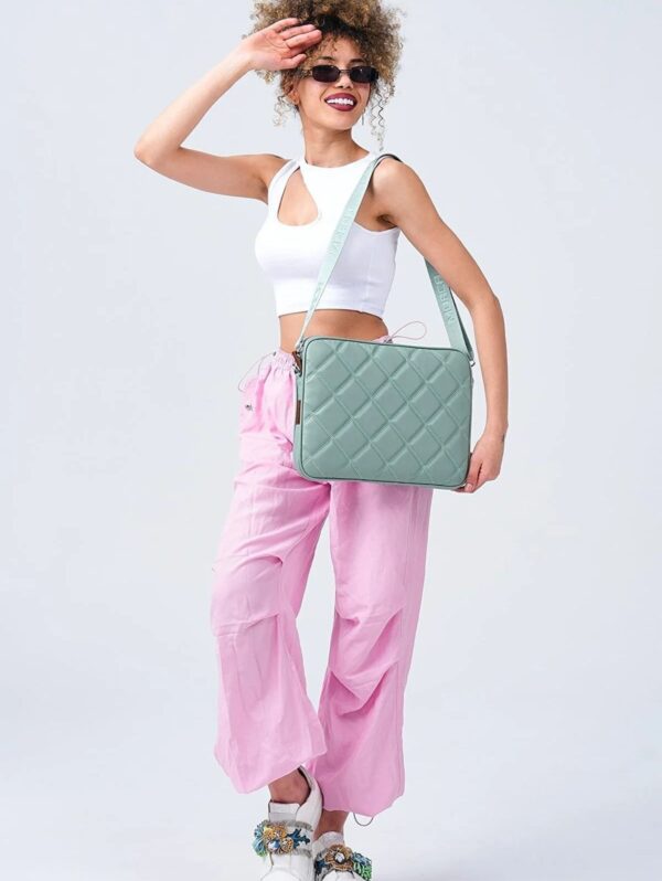 Mint yeşili rengi ve modern kapitone dikişleri sayesinde hem iş ortamına hem günlük kullanıma uygundur. Kadın ve erkek kullanıcılara hitap eden bu omuz askılı laptop çantası, tarzınıza uyum sağlarken işlevselliğinden de ödün vermez.