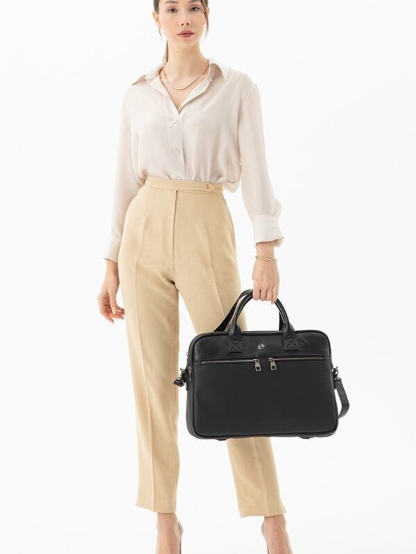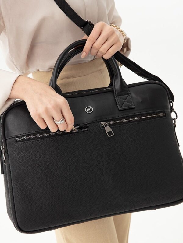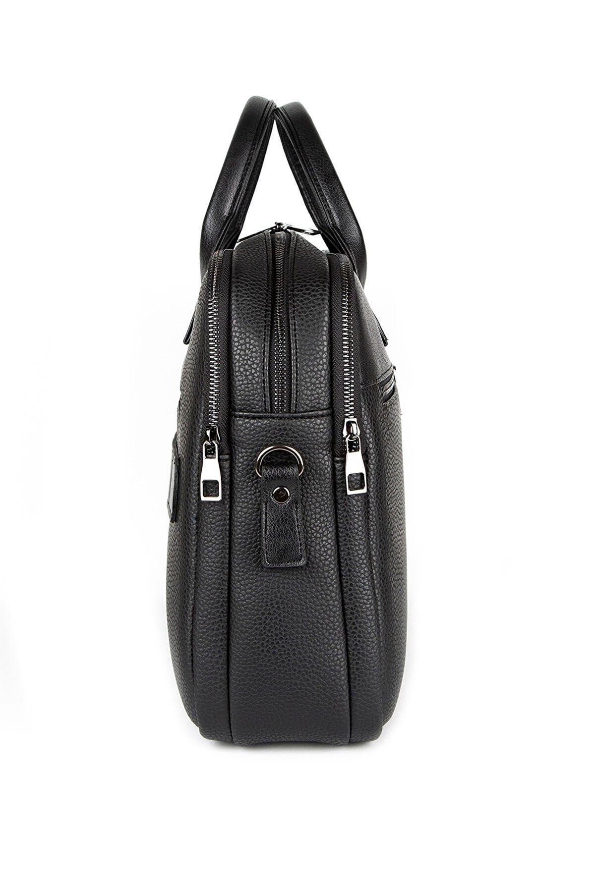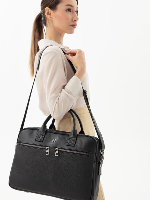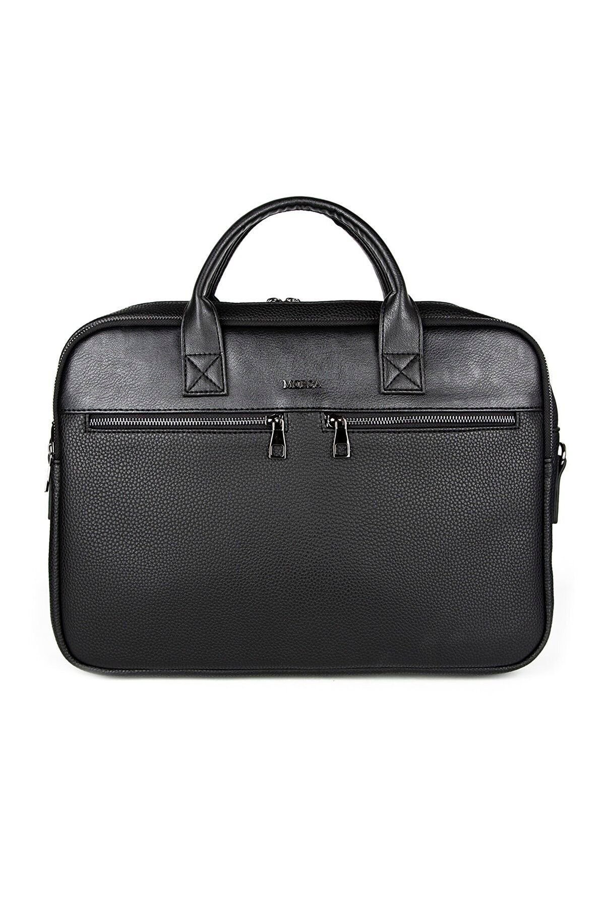 Morca- Unisex Evrak & Laptop Çantası, Omuz Askılı, Su Geçirmez Siyah Yüksek kaliteli poliüretan deri kullanılarak üretilmiştir. ; Ebatları: Yükseklik 32 cm, Eni 42 cm, Derinlik 12 cm. ; Özel laptop bölmesi, 14 ve 15.6 inç ölçülerinde. ; Ayarlanabilir omuz askısı ile rahat kullanım sağlar. ; Kalem, kartvizit gibi özel bölmeleri bulunmaktadır. ; Su geçirmez özelliği sayesinde içindeki eşyaları korur. ; Ana bölme ve 2 adet fermuarlı ayrı dosya ve evrak bölümü mevcuttur. ; Ön kısmında 2 adet fermuarlı cep, arka tarafında ise valize takılabilen aparat bulunmaktadır. ; İş seyahatleri ve günlük kullanım için ideal bir evrak çantasıdır. ;