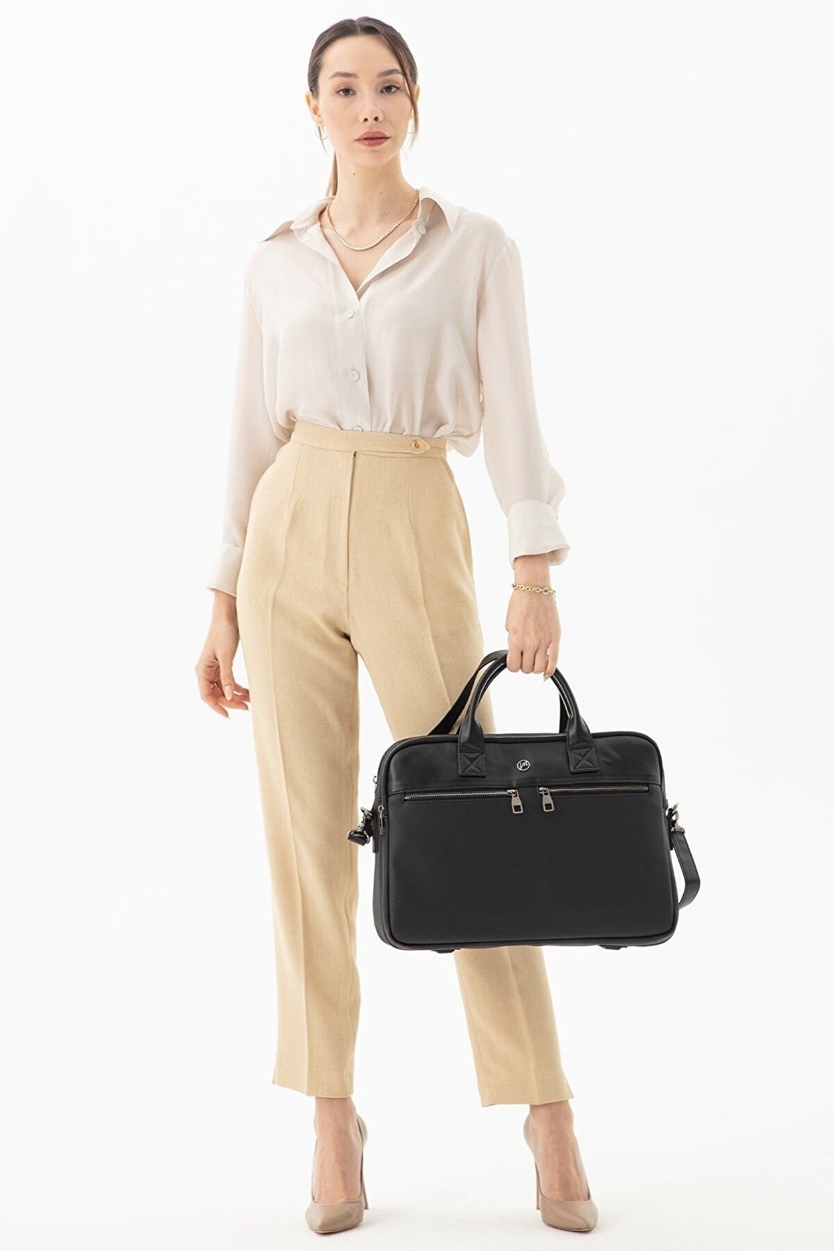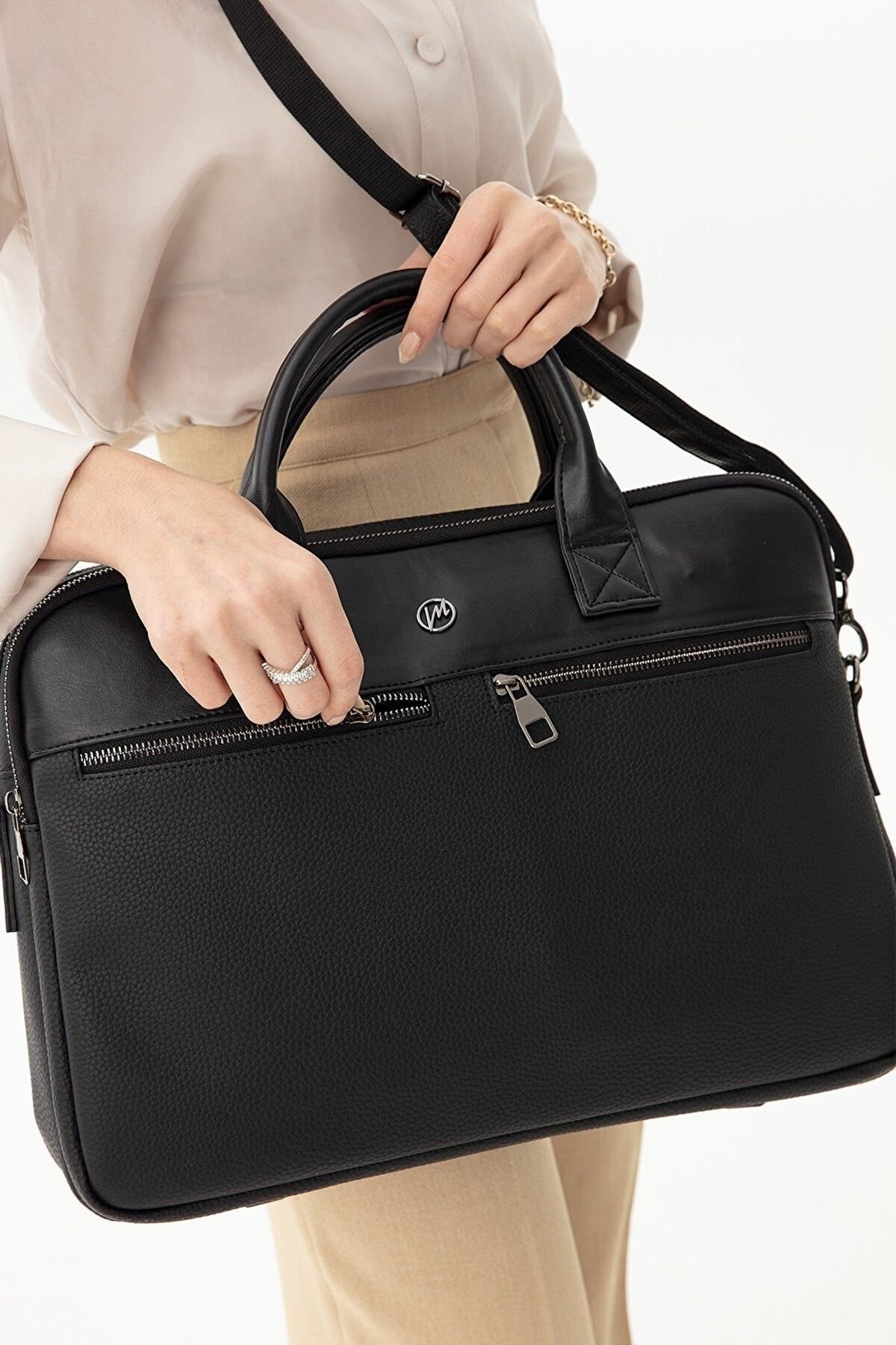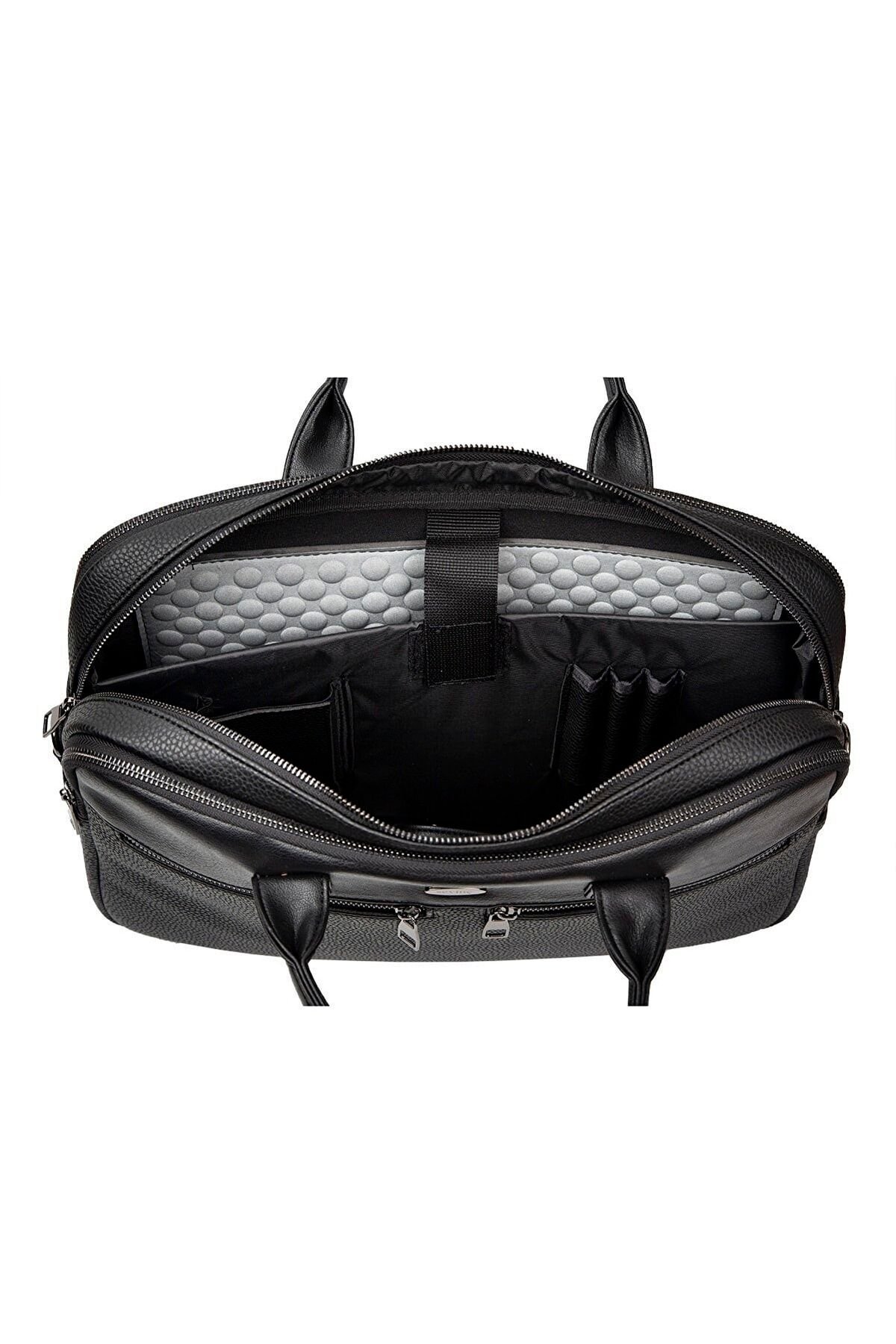 Morca- Unisex Evrak & Laptop Çantası, Omuz Askılı, Su Geçirmez Siyah Yüksek kaliteli poliüretan deri kullanılarak üretilmiştir. ; Ebatları: Yükseklik 32 cm, Eni 42 cm, Derinlik 12 cm. ; Özel laptop bölmesi, 14 ve 15.6 inç ölçülerinde. ; Ayarlanabilir omuz askısı ile rahat kullanım sağlar. ; Kalem, kartvizit gibi özel bölmeleri bulunmaktadır. ; Su geçirmez özelliği sayesinde içindeki eşyaları korur. ; Ana bölme ve 2 adet fermuarlı ayrı dosya ve evrak bölümü mevcuttur. ; Ön kısmında 2 adet fermuarlı cep, arka tarafında ise valize takılabilen aparat bulunmaktadır. ; İş seyahatleri ve günlük kullanım için ideal bir evrak çantasıdır. ;