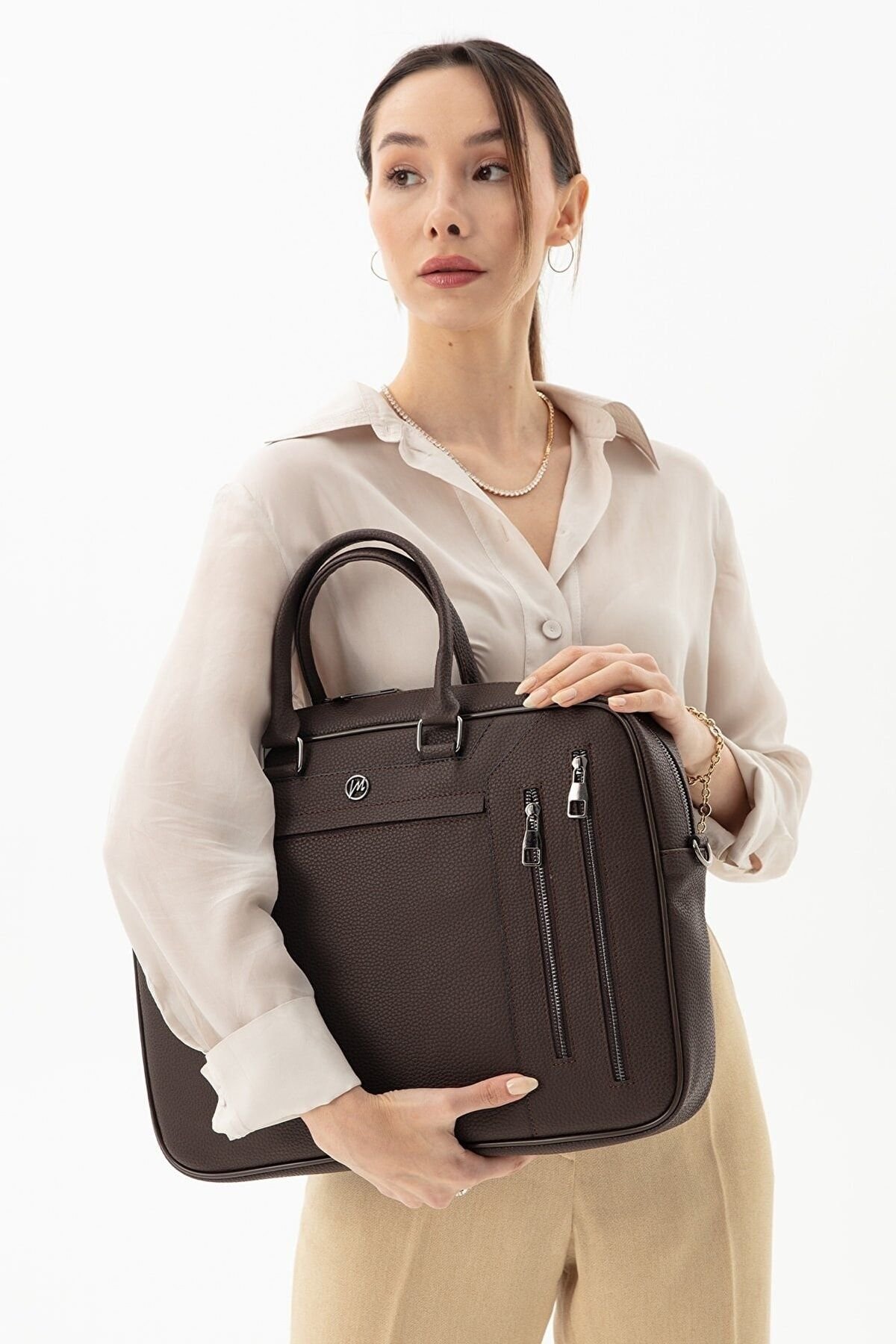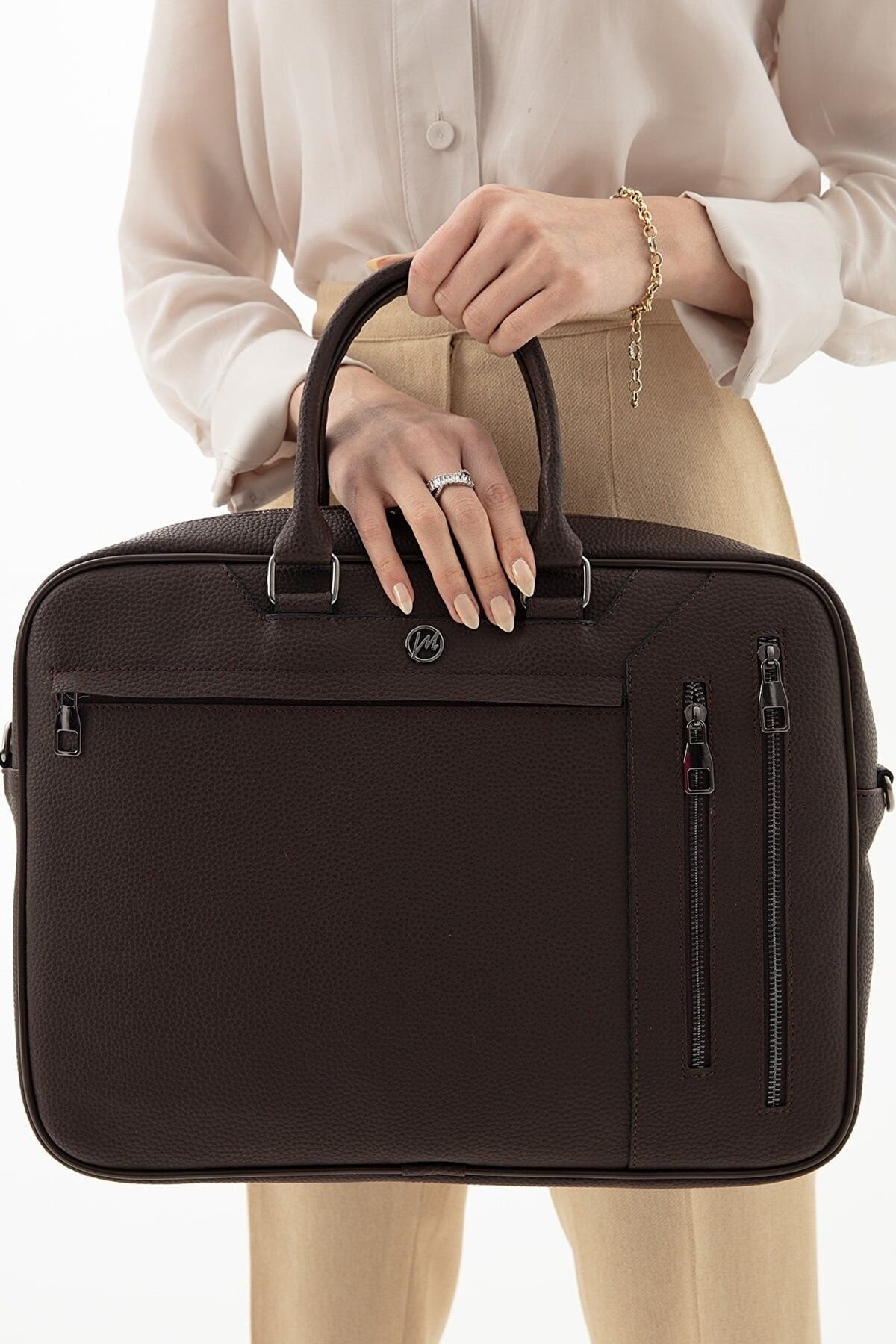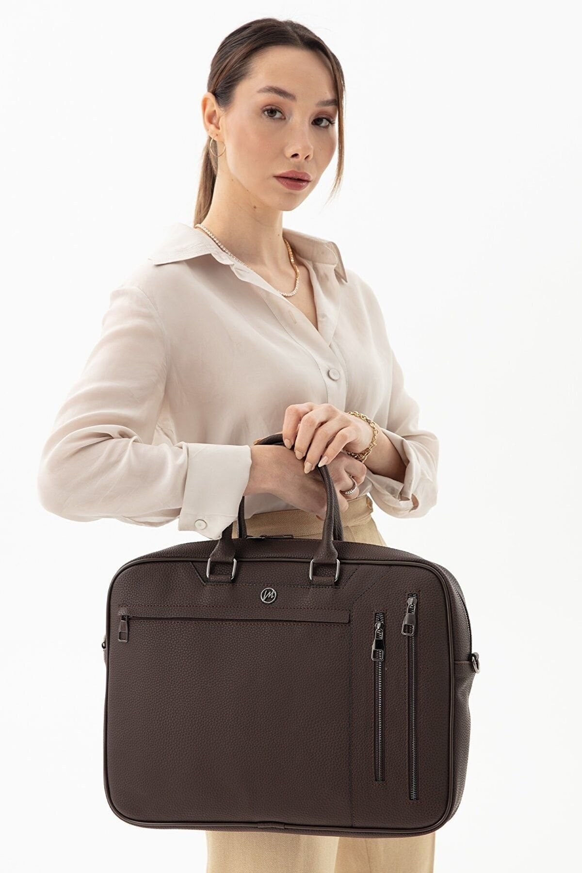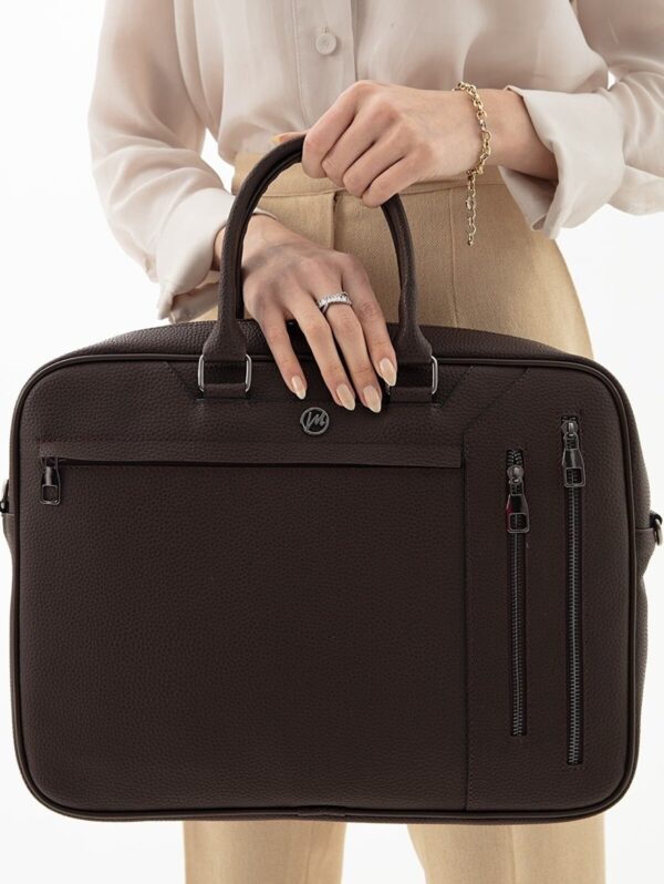 MORCA Unisex Laptop & Evrak Çantası Deri Kahverengi “Tarzınızı Yansıtan Fonksiyonel Çanta” ; İş hayatında tarzınızı yansıtmak artık daha kolay! Tasarımın en özel özelliklerinden biri ise çıkarılabilir omuz askısı. Bu sayede, isterseniz omuzda taşıyabilir veya şık bir çanta olarak elinizde taşıyabilirsiniz. Öne Çıkan Özellikler: Yerli üretim. ; 1.sınıf kaliteli poliüretan deriden üretilmiştir. ; Ebatları: Yükseklik: 29 cm Genişlik: 40 cm Alt taban derinliği: 7 cm’dir ; Günlük ofis ihtiyaçlarınız için kullanıma uygun 15.6″ laptop bölmesi mevcuttur.İçerisinde ekstra fermuarlı cep kalem , kartvizitlik gibi özel bölümler mevucttur. ; Çıkarılabilir omuz askısı sayesinde ister elde ister omuzda kullanılabilir. ; 1 ana bölme & 2 adet fermuarlı ayrı dosya ve evrak bölümü önde 2 arkada 1 adet fermuarlı cep bulunmaktadır. ; Seyahatlerinizde valizinize takabileceğiniz arka aparat bulunmaktadır. ;