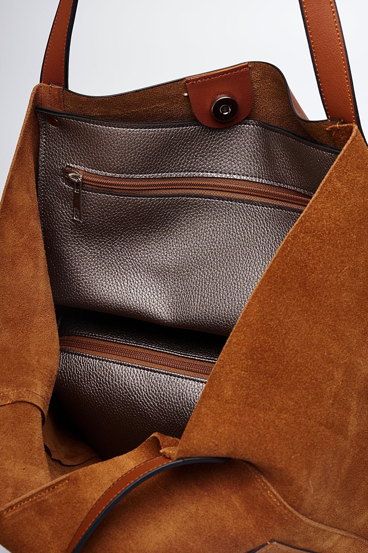 ● İç Yapı: Fermuarlı iç cep + ayrı yavru çanta