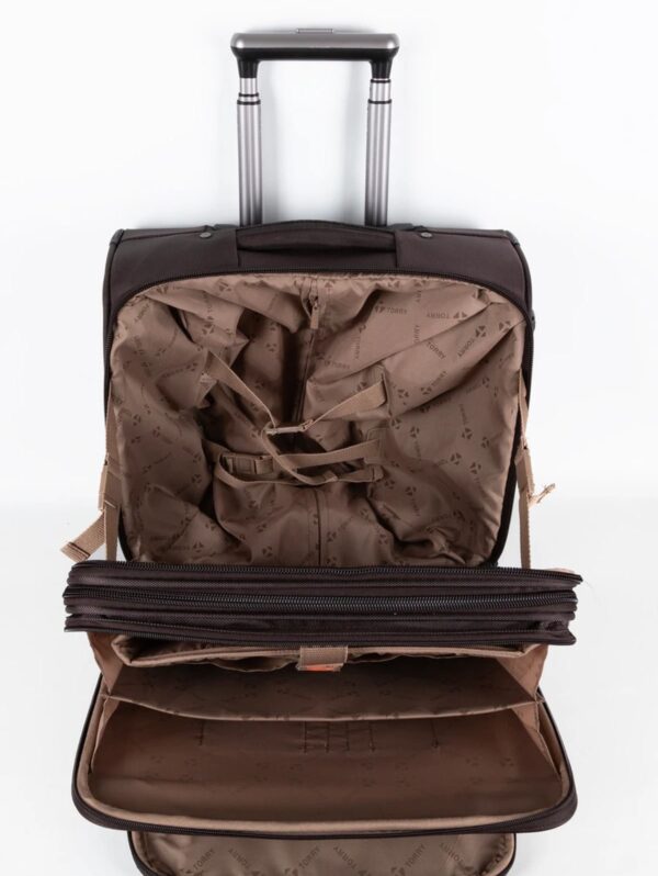 Torry Ultra Lüks 2 Tekerlekli Unisex Premium Seyahat Pilot Çantası Kabin Boy Kahverengi TRYLG007BRWN Optimal Boyutlar: 42 cm genişlik, 38 cm yükseklik ve 29 cm derinlik; 3,7 kg ağırlıkta ve 43,3 litre hacim sağlar. ; Yüksek Kaliteli Malzeme: A kalite yırtılmaz ve su geçirmez 2100D teflon kumaştan üretilmiş, dayanıklılık ve koruma sunar. ; Dünya Standartlarında Üretim: Global markalarla aynı fabrikada, aynı yüksek standartlar ve kaliteli malzemelerle üretilmiştir. ; 4 Kademe Teleskopik Çekçek: Kolay taşıma için dört kademeli teleskopik çekçek mekanizması bulunur. ; Gömme Tekerlek Sistemi: A kalite gömme tekerlek sistemi, sessiz ve pürüzsüz hareket sağlar. ; Güçlü Fermuar: Tip10 kalın diş fermuar, ekstra güvenlik ve sağlamlık için kullanılmıştır. ; Evrensel TSA2 Kilit Sistemi: Güvenliği artıran TSA kilit sistemi ile havaalanlarında güven içinde seyahat edebilirsiniz. ; Bağımsız 15’’ Laptop Bölmesi: Tamamen ayrı bir bölme olan laptop bölümü, diğer eşyalarınızla karışmaz, kolay erişim sağlar. ; Ekstra Körük Sistemi: %20 daha fazla eşya taşıma kapasitesi sunan genişletilebilir körük sistemi. ; Organize Ön Bölme: Kalemler, kredi kartları ve diğer küçük eşyalarınızı düzenlemek için tasarlanmış pratik organizasyon bölmesi. ; ; Bu kabin boy valiz, hem iş hem de kişisel seyahatlerinizde yüksek konfor ve düzen sunan, kalite ve fonksiyonelliği birleştiren bir seyahat çantasıdır.